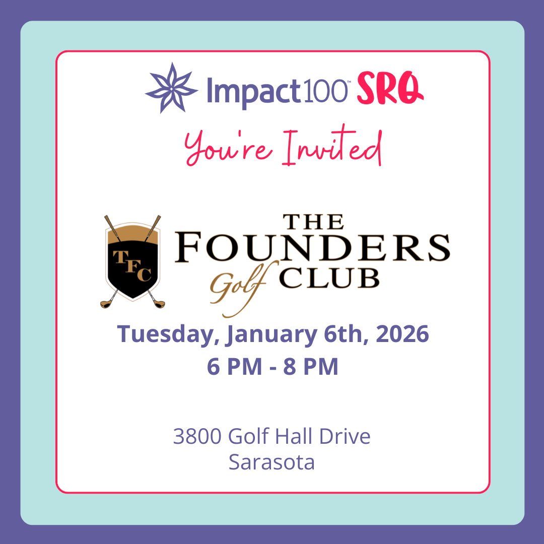 A very special way to begin the New Year at The Founders Club. The spectacular evening provides an opportunity for our members to bring a prospective member to hear firsthand from a speaker representing a nonprofit organization that has received an Impact100 SRQ grant.