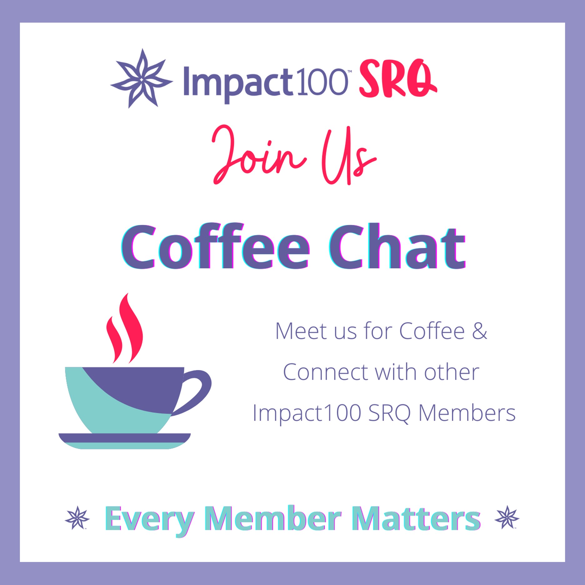 Join your hosts, Fran Berg, Maureen Cozzi, Margie Meyer and Lynne Bouton for coffee and brunch bites as we share the mission, goals and accomplishments of Impact100 SRQ.