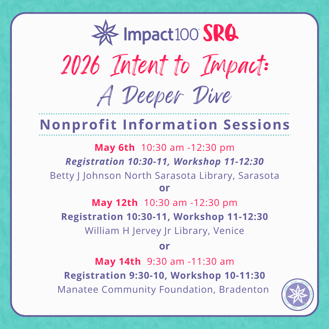 We invite you to attend one of the Impact100 SRQ Grant Information Workshops – Intent To Impact: a Deeper Dive