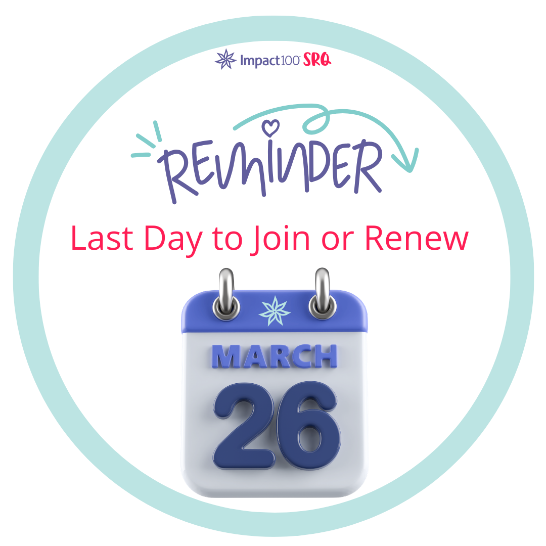 March 26 is the final day to join or renew your membership with Impact100 SRQ for the 2026 giving year. Your membership is what makes this extraordinary work possible—together, since 2019, our members have funded more than $4.1 million in grants to local nonprofits, creating lasting change across our community. Every renewal and every new membership strengthens our collective ability to continue supporting bold ideas, urgent needs, and transformative programs right here in Sarasota and Manatee counties. If you have not yet renewed, we hope you will stand with us and continue this incredible work.